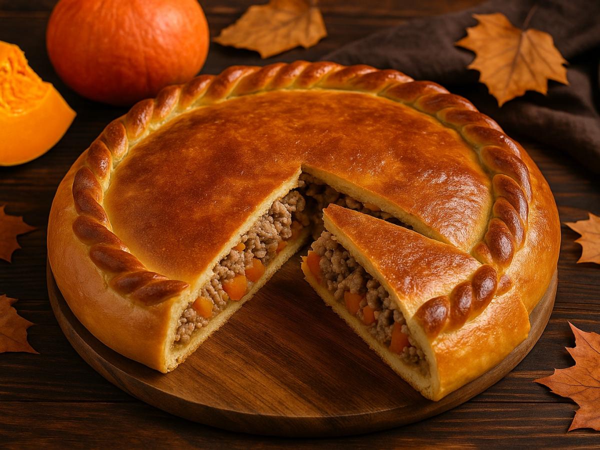 Рождественский пирог с цыплёнком — это блюдо, которое создаёт ощущение настоящего праздника ещё до того, как окажется на столе. Он объединяет в себе сразу несколько кулинарных традиций: сытность домашней выпечки, щедрую многослойную начинку и ту особую атмосферу, ради которой семья собирается вместе. Такой пирог не просто заменяет запечённую птицу — он становится центром застолья, вокруг которого строится всё меню. Его главное достоинство — продуманная композиция. Под румяной шапкой дрожжевого теста скрывается полноценное горячее блюдо: отварное куриное мясо, ароматный рис, овощи и грибы. В разрезе пирог выглядит особенно эффектно, а вкус раскрывается постепенно — слой за слоем. Именно поэтому его часто готовят к Рождеству, Новому году или другим большим семейным праздникам, когда важно не только накормить гостей, но и удивить их. Почему этот пирог считают праздничным блюдом В отличие от привычной выпечки, рождественский пирог с цыплёнком требует времени и внимания, но результат полностью оправдывает усилия. Он получается плотным, основательным и при этом не тяжёлым. Рис впитывает соки курицы и грибов, овощи добавляют сладковатые нотки, а дрожжевое тесто служит надёжной оболочкой, удерживая все ароматы внутри.