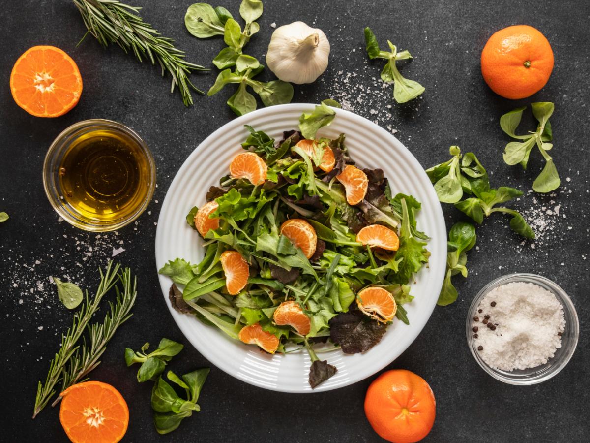 Рецепт салата Новогодний с мандаринами, стейком и тыквенными семечками